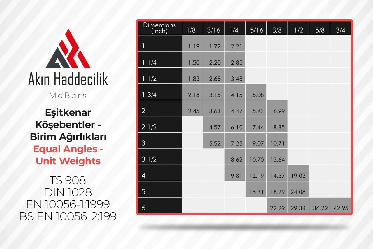 Akın Haddecilik demir çelik sektöründe ve başka sektörlerde çeşitli kullanım alanları bulunan Eşitkenar Köşebent demirini birçok farklı ölçüde, kalitede ve 3mt – 12mt boyları arasında üretebilme kapasitesine sahiptir. Üretilen bu eşitkenar köşebent çelik konstrüksiyonlarda, enerji nakil hatlarında ve tarım makineleri imalatı olmak üzere pek çok sayamadığımız farklı sektörlerde kullanılır.